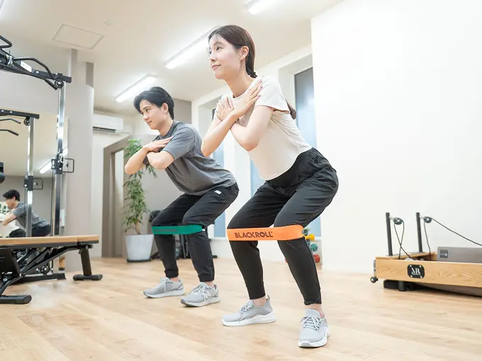 姿勢・呼吸・関節の動き・筋膜リリースなど、身体を整えたうえでトレーニングを行います。目的やお悩みに合わせて毎回内容を調整しています。
