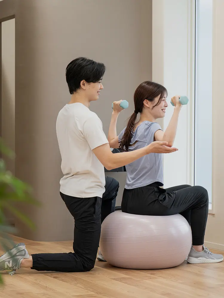 現在の悩みや目標をヒアリングし、姿勢や動作のクセ、関節の動き、筋肉のバランス、呼吸などをチェック。 身体の状態を多角的に評価し、最適なトレーニング方針を導き出します。